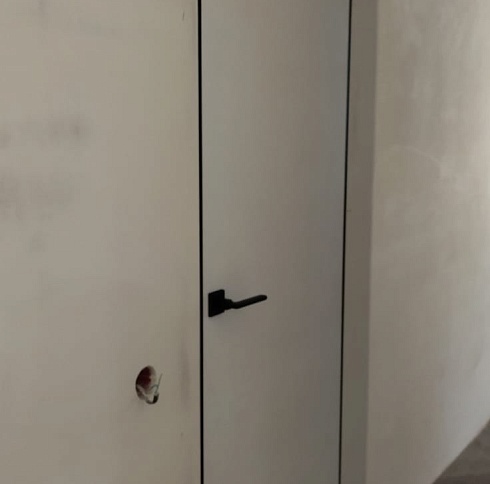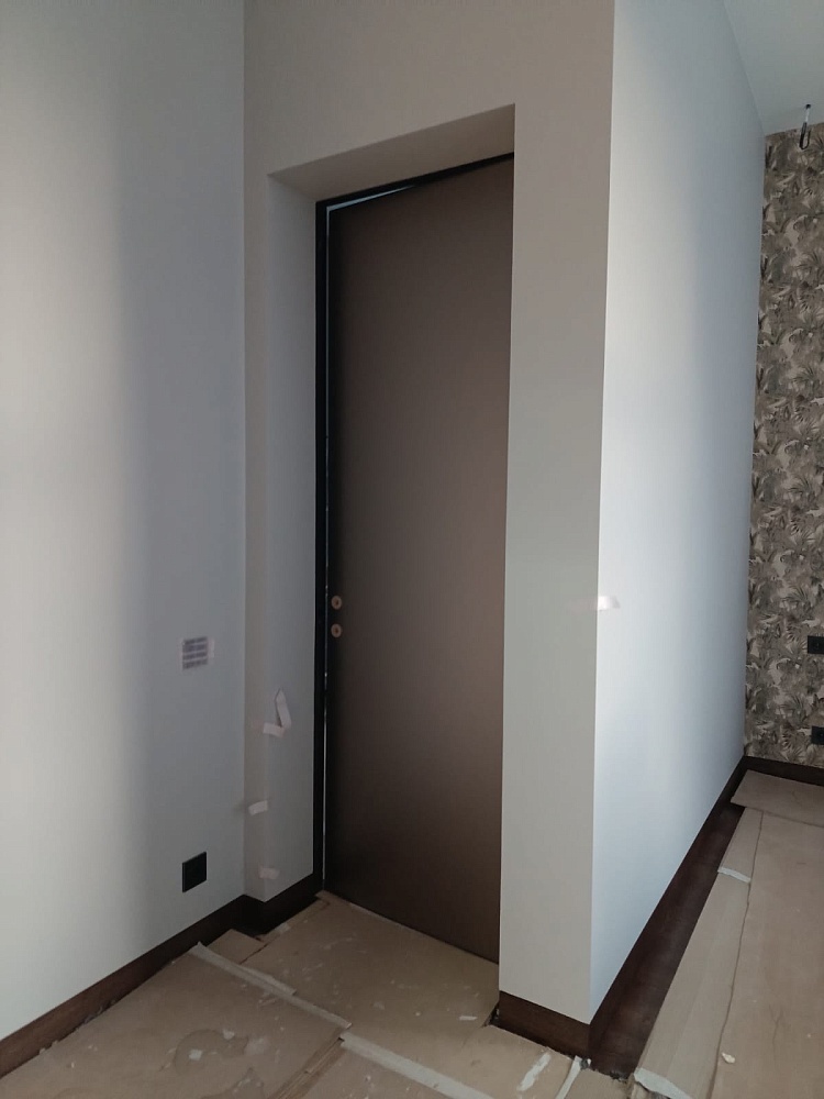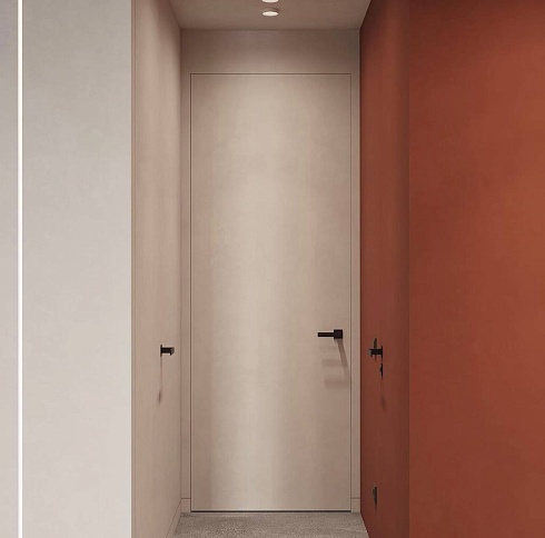Дверь, которая растворится в дизайнерском пространстве. Универсальное решение - гладкое полотно со срытым коробом, обработанное белым грунтом.