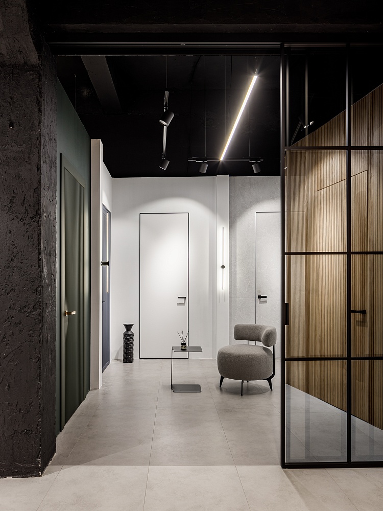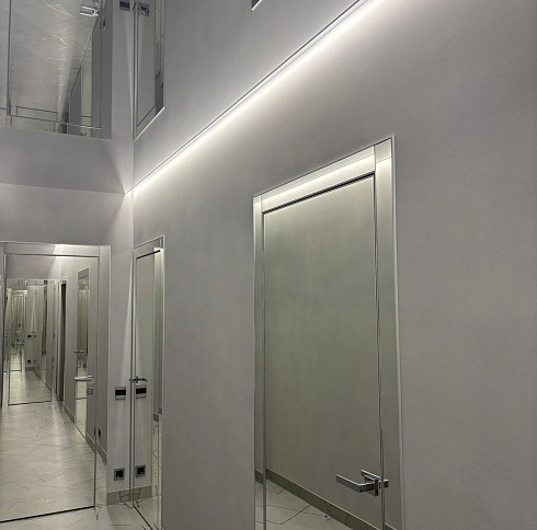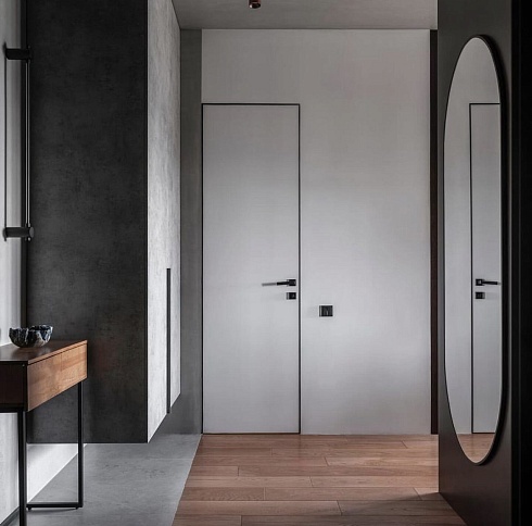 «Наши концепции в дизайне всегда опираются на минимализм и рациональность. Чистые линии и лаконичные формы всегда выстраивают строгую логику в оформлении интерьеров. В своих проектах мы почти всегда используем двери со скрытым монтажом, в сочетании с шпонированными панелями, с зеркалами или просто под покраску они помогают нам организовать ту самую притягательность минимализма.»Видео о скрытых дверях
