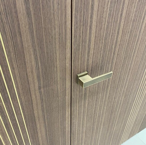 Двери комплектуются скрытыми, регулируемыми в трех плоскостях и с открыванием до 180°(зависит от способа монтажа) петлями и бесшумными магнитными замками с пластиковым язычком итальянского производства. Доступны к заказу раздвижные двери и стеновые панели в цвет дверей.