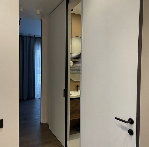 «Двери скрытого монтажа незаменимы в интерьере, где есть стеновые панели. Они позволяют сохранить ровные линии стен и создать единое пространство помещения.»