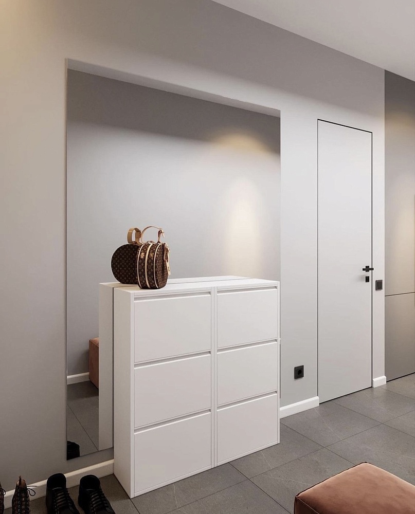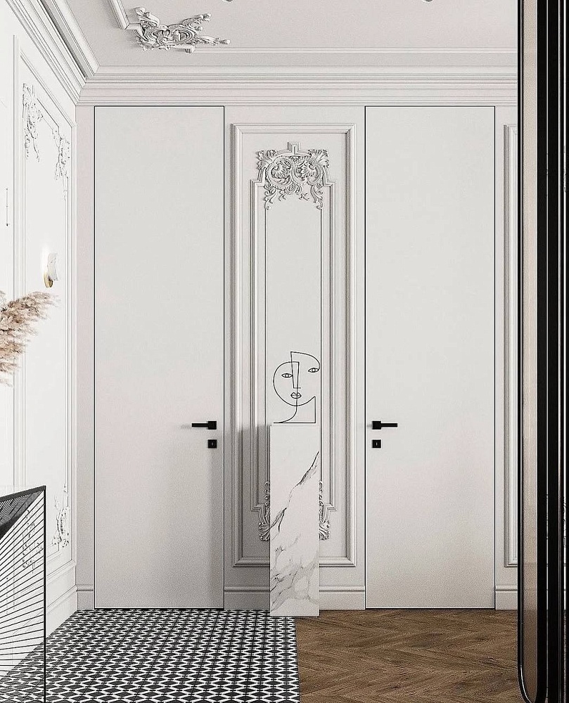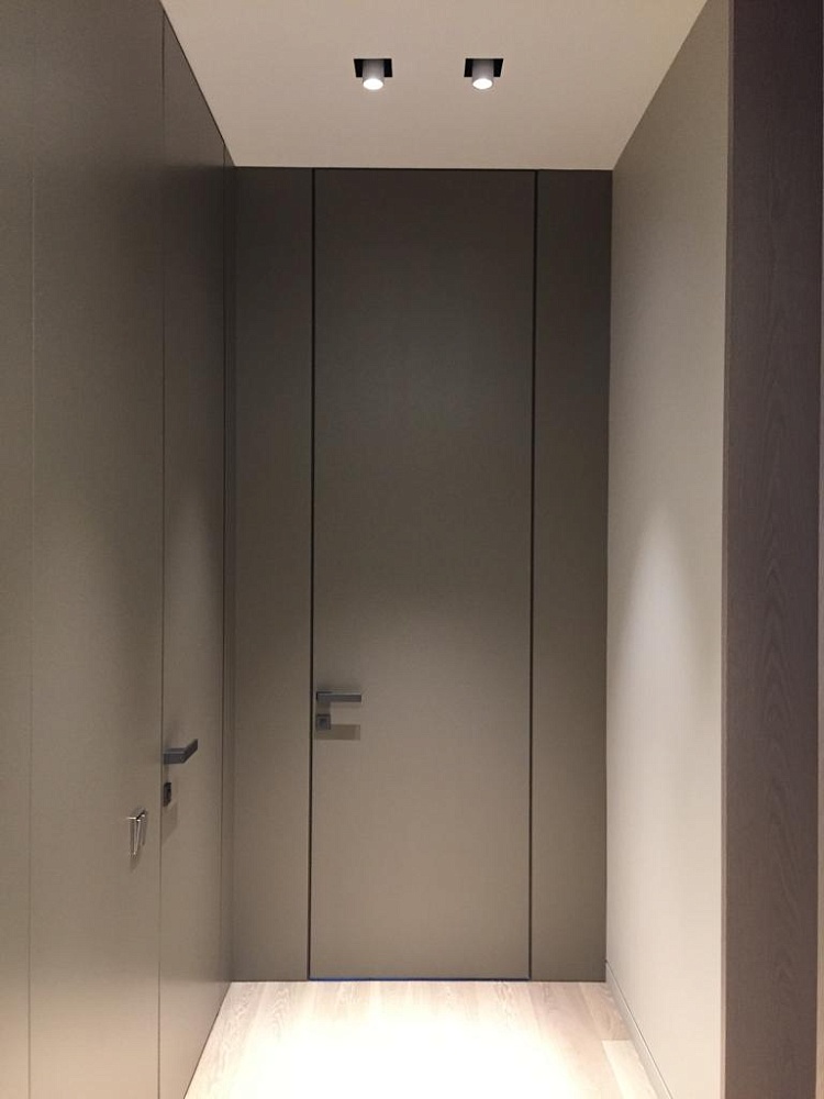 - когда в проекте много дверей, полезно часть из них сделать "невидимыми" - это делает интерьер визуально более "легким", чистым, лаконичным